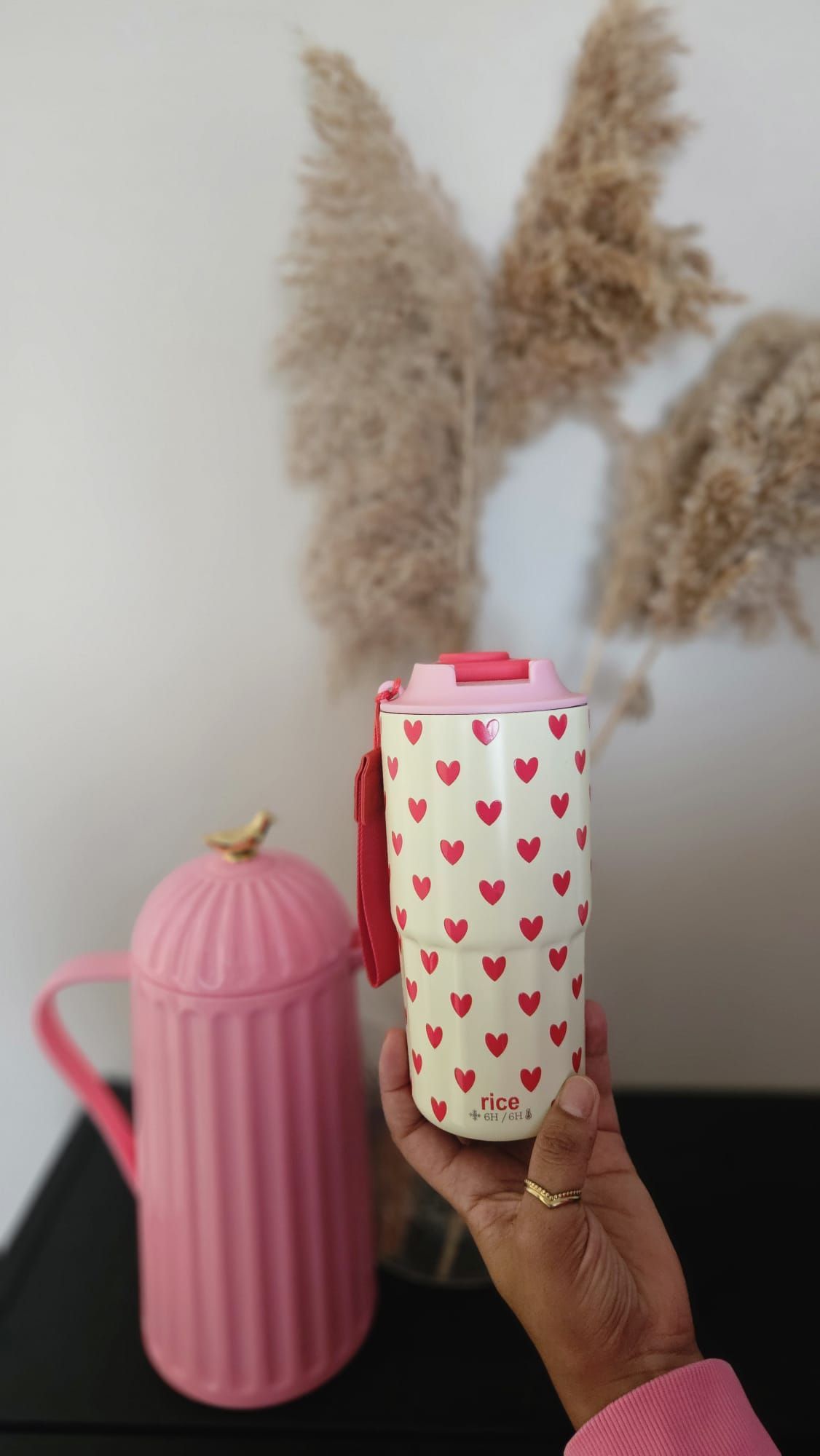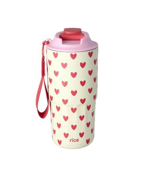 Groot Roestvrijstalen Thermobeker - Crème - Hearts Print